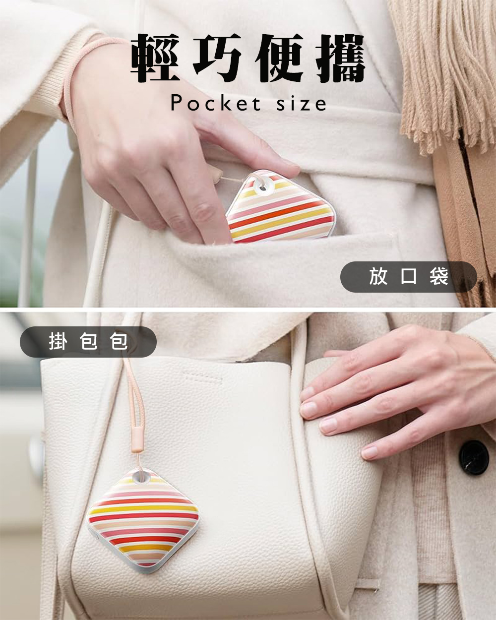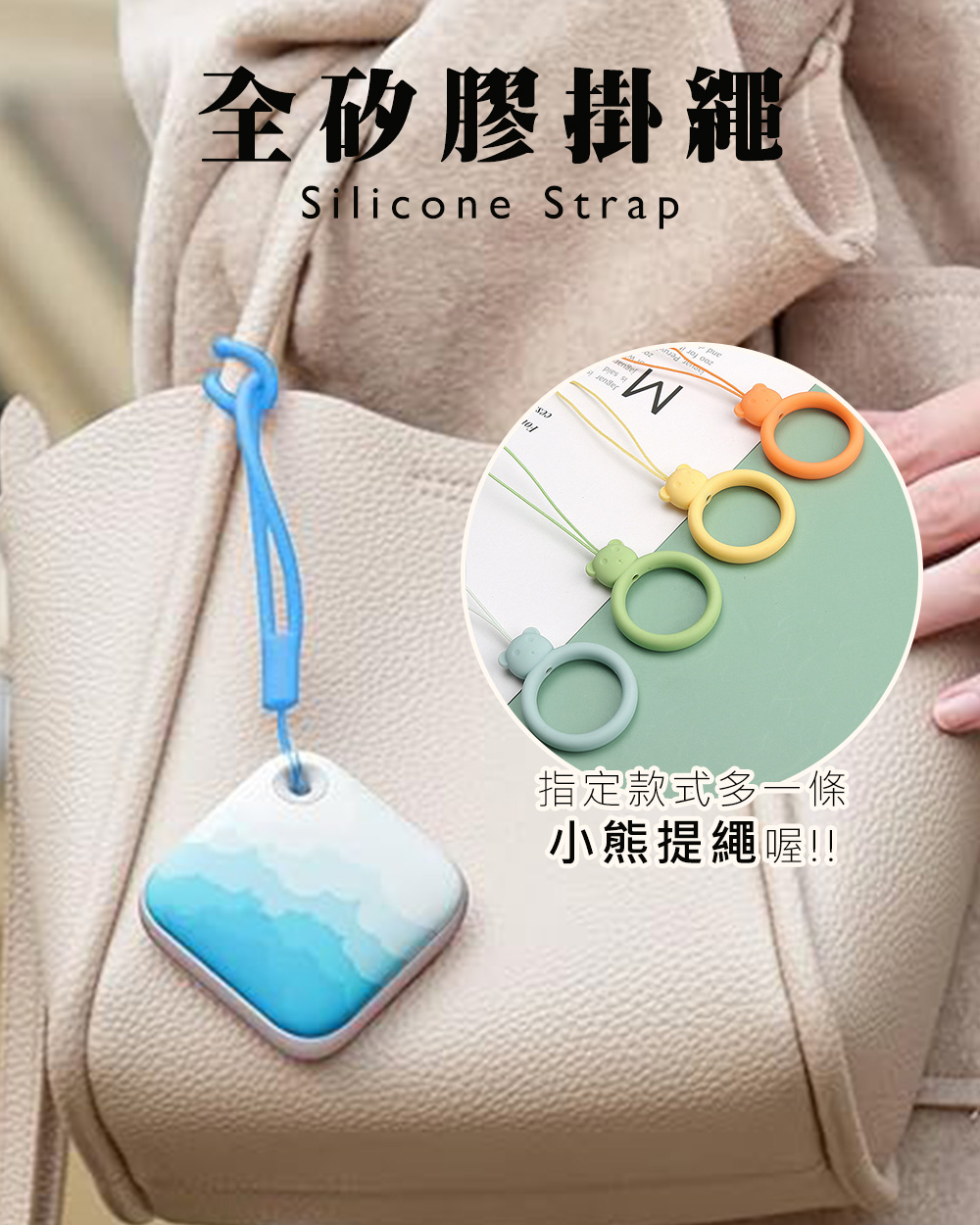 輕巧到能放進口袋👍,或用矽膠掛繩掛在包包上。