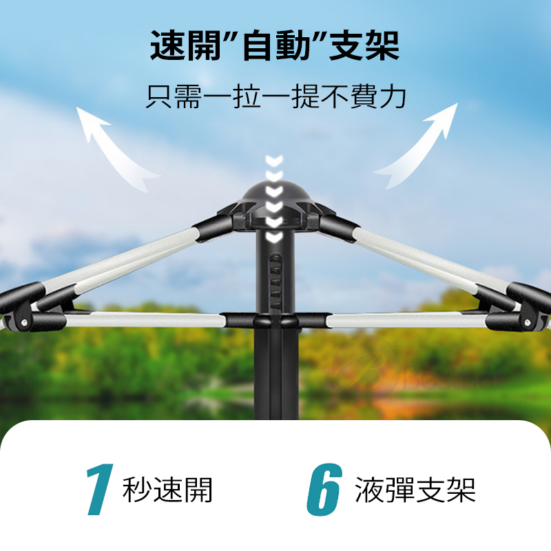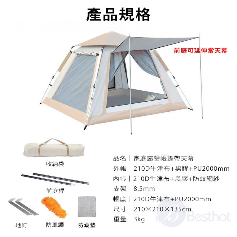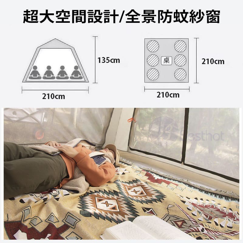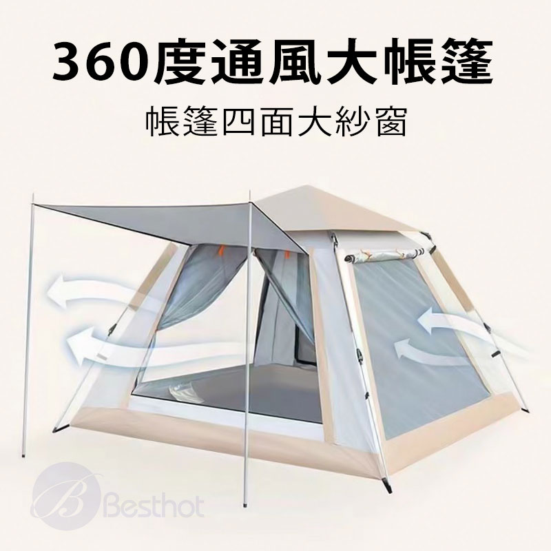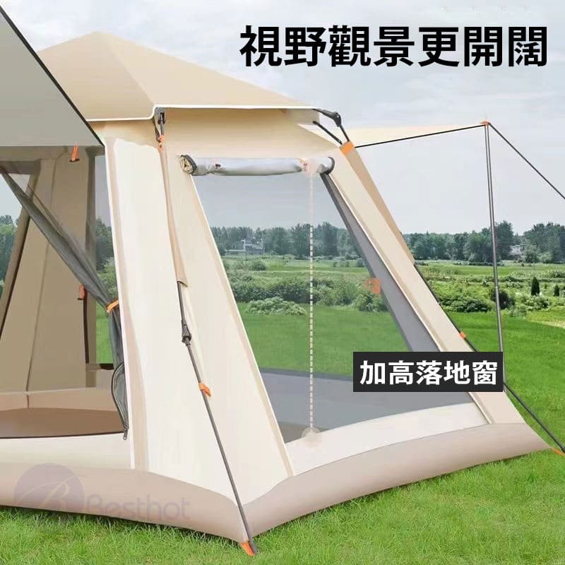 【Besthot】塗黑天幕全自動速開4人帳篷-贈防潮墊
