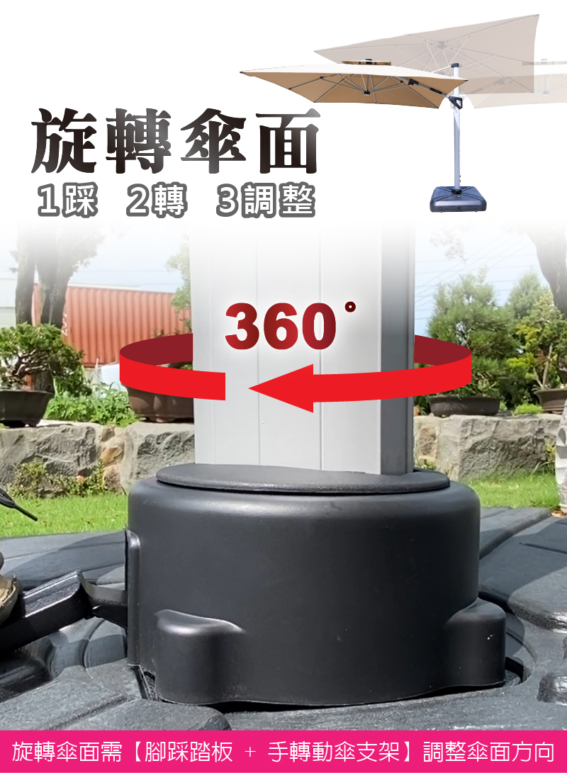旋轉旋鈕設計,可快速調整傘面方向,隨陽光角度變化遮陽,使用更方便靈活。