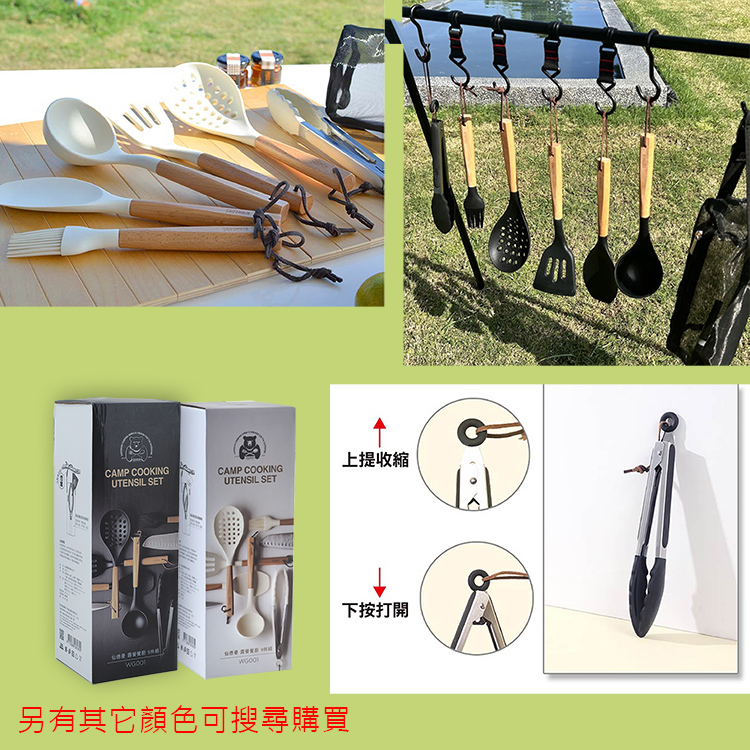 煎杓/湯杓/漏杓/菜匙/料理夾/油刷/料理刀/廚剪/收納袋一次購足,多功能使用堅固耐高溫,專屬收納提袋,插扣設計,吊掛、勾吊、環扣都適用,外出好攜帶、好收納,好握好拿,好沖好洗,料理食物好幫手,室內、郊外、露營皆可安心使用,輕鬆創造行動廚房,讓您輕鬆烹飪美食。