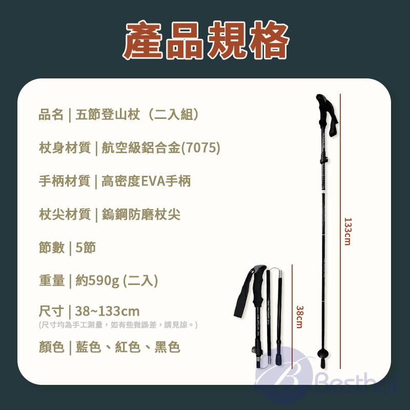 【Besthot】極輕鋁合金五節登山杖-2入組