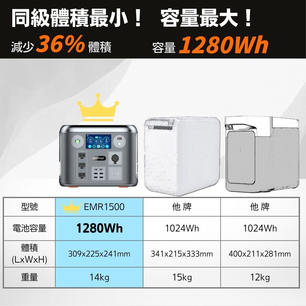 ・ 1280Wh 大容量,同級容量最大體積卻最小!