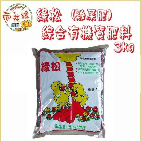 {向花緣} 綠松綜合有機肥(禽畜糞堆肥、雞屎肥) 3kg - 全發酵殺菌處理、無臭味