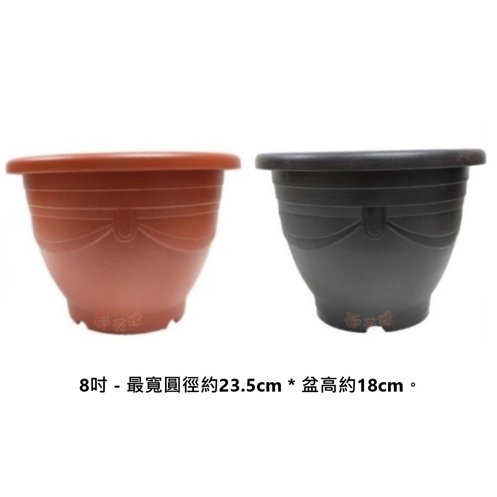 8吋 - 最寬圓徑約23.5cm * 盆高約18cm。