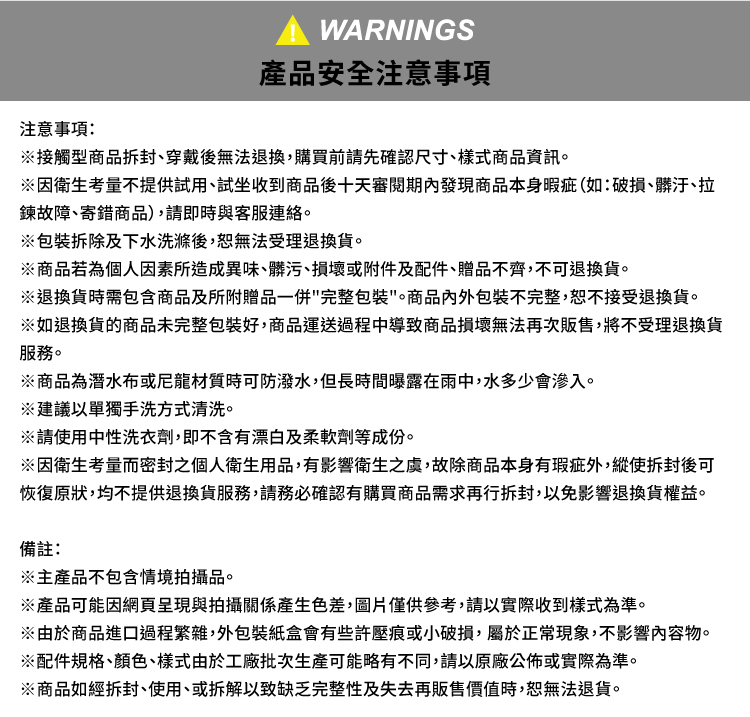 ※接觸型商品拆封、穿戴後無法退換,購買前請先確認尺寸、樣式商品資訊。