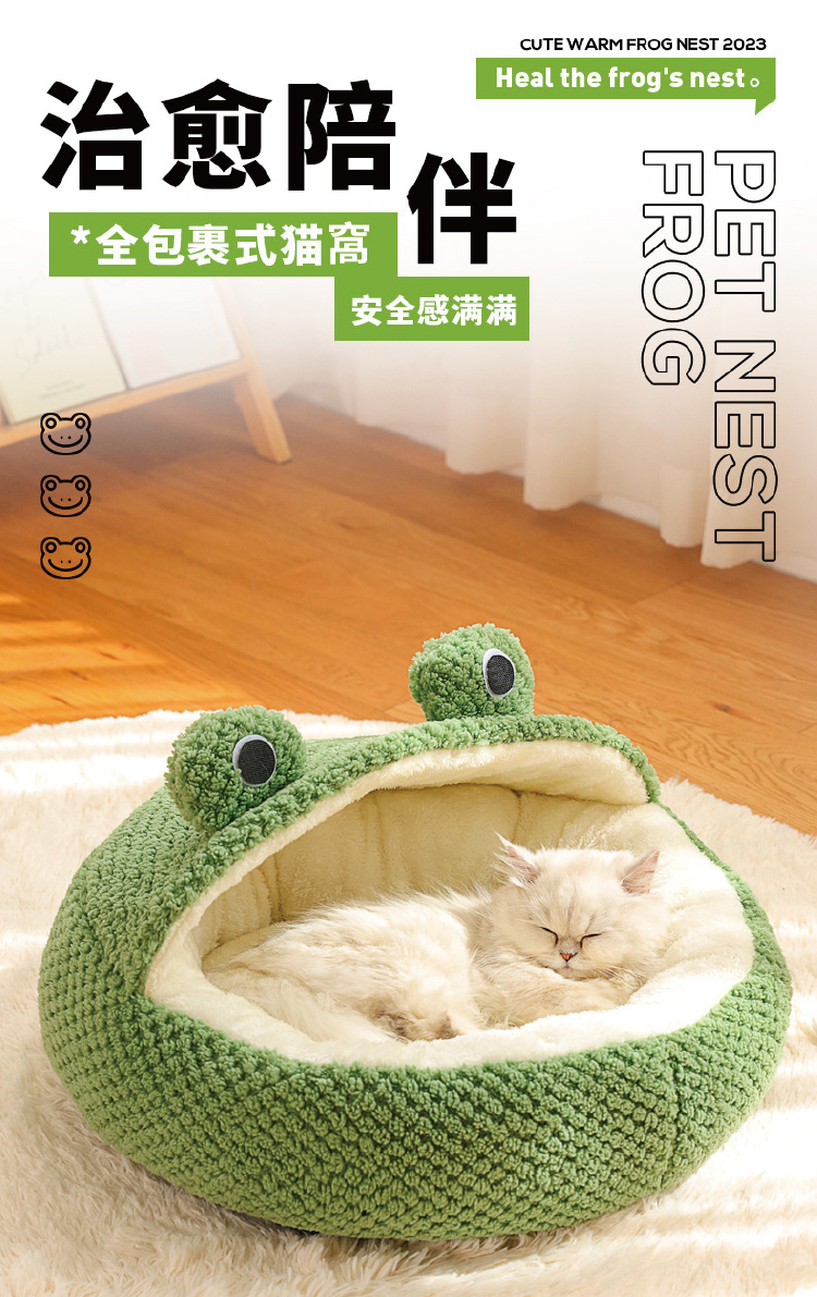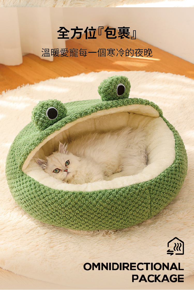 Q版青蛙保暖寵物窩 (半棚款) 寵物床 寵物墊
