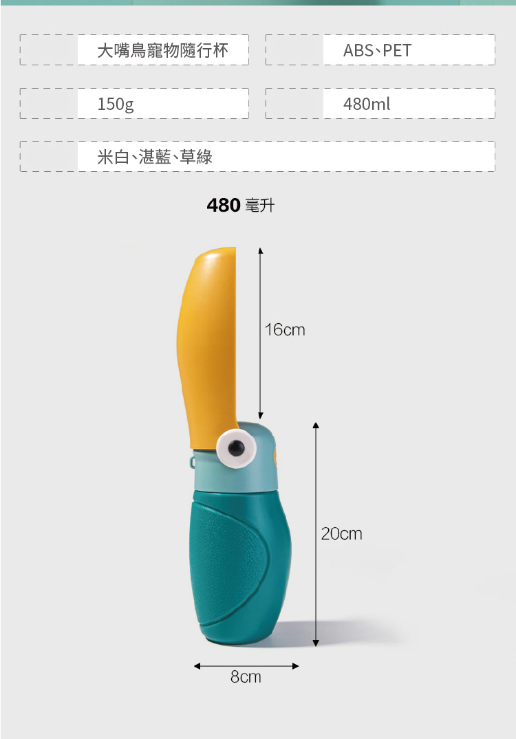 產品尺寸:摺疊20x8x8cm 水杯容量/480ml 水碗長度/16cm