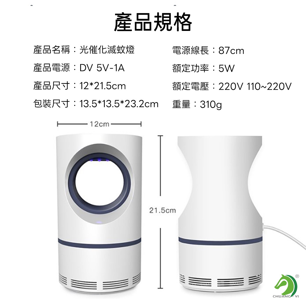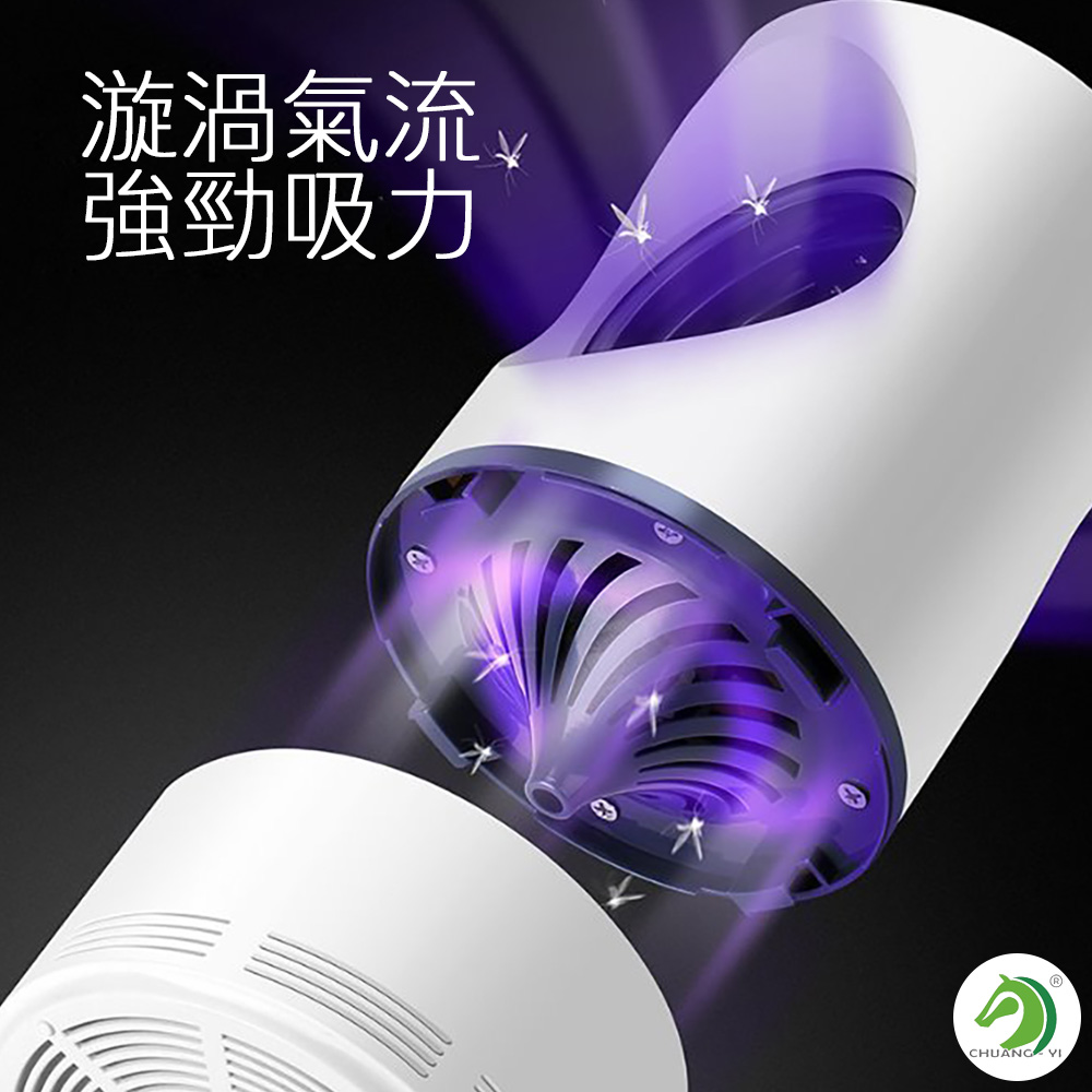 採用蚊子喜愛的368nm紫外光誘蚊燈 360°發光與光觸媒產生的光催化反應 釋放出二氧化碳和氣流,
