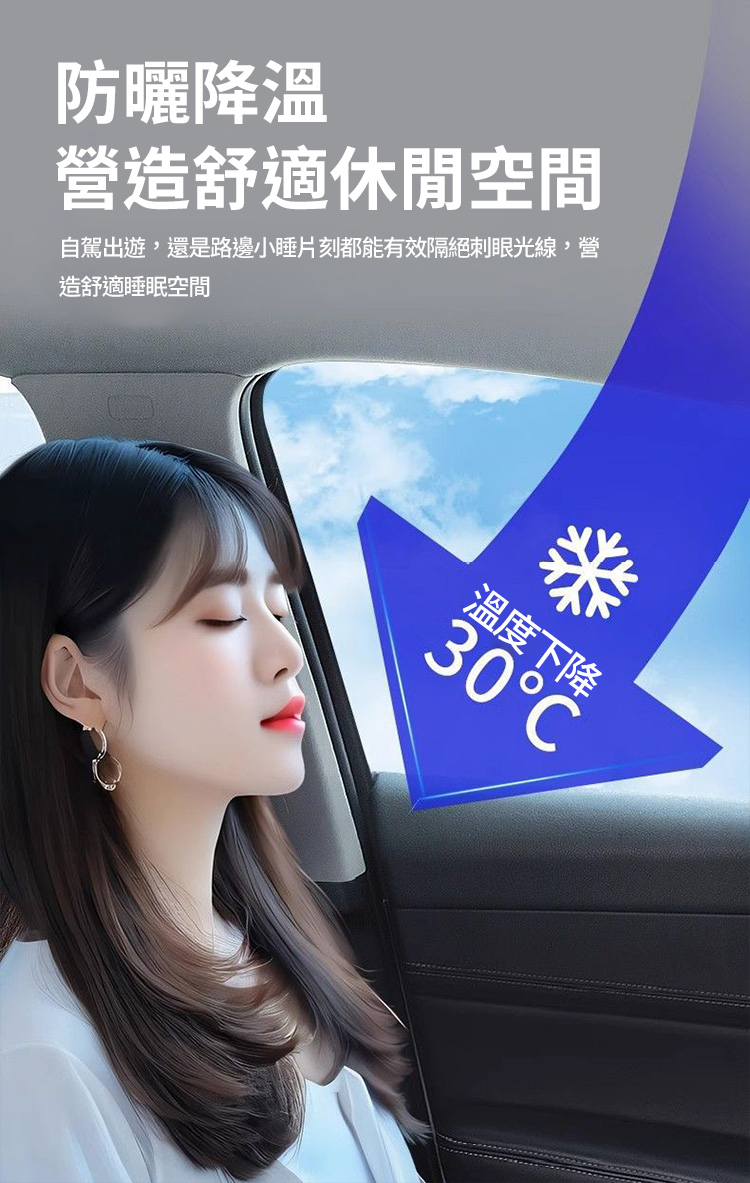 ● 1秒安裝立刻遮陽 ● 收納輕鬆折疊快速 ● 完全遮擋密不透光 ● 防曬吸熱冰晶鎖溫