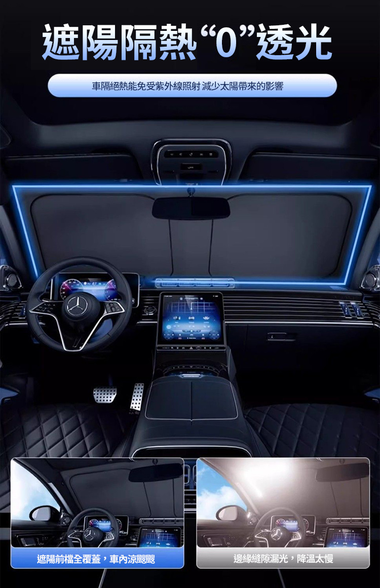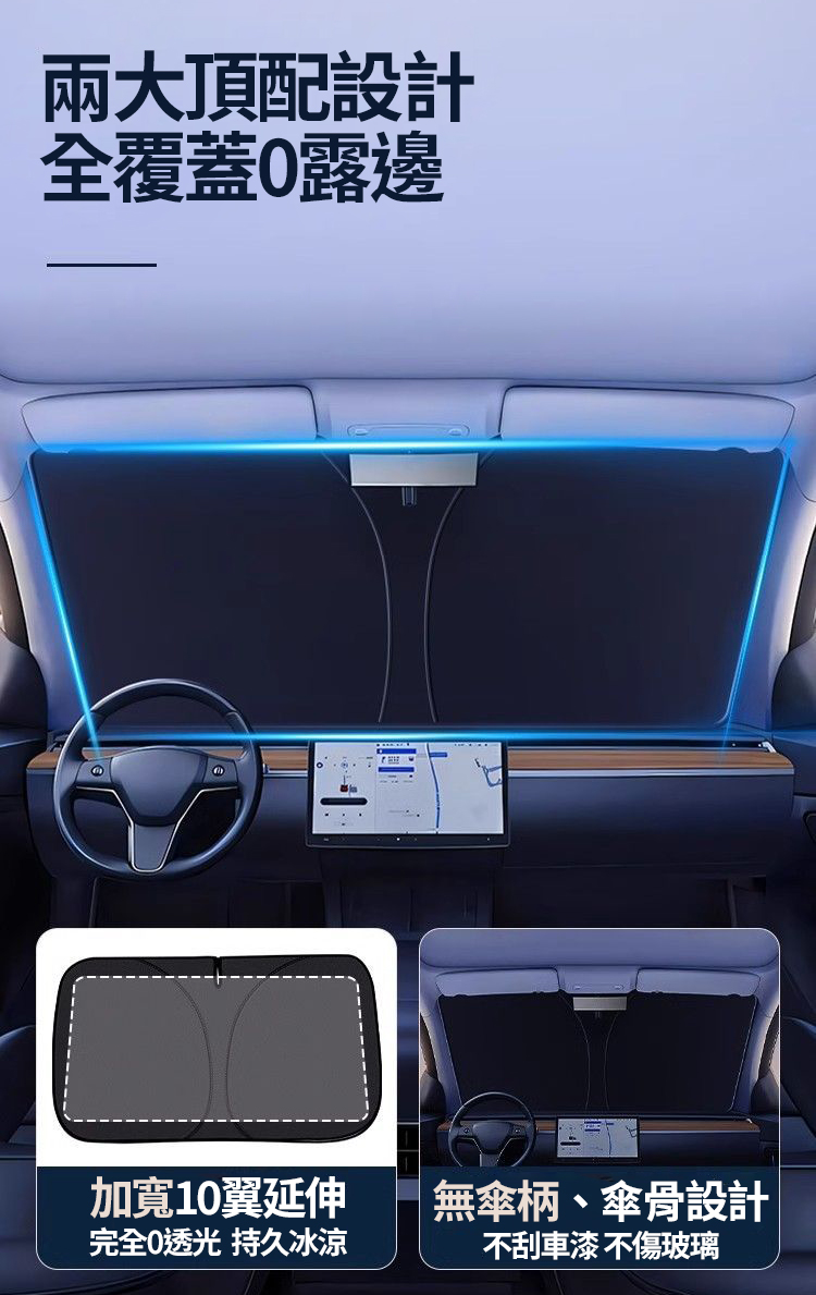 ● 1秒安裝立刻遮陽● 收納輕鬆折疊快速● 完全遮擋密不透光● 防曬吸熱冰晶鎖溫
