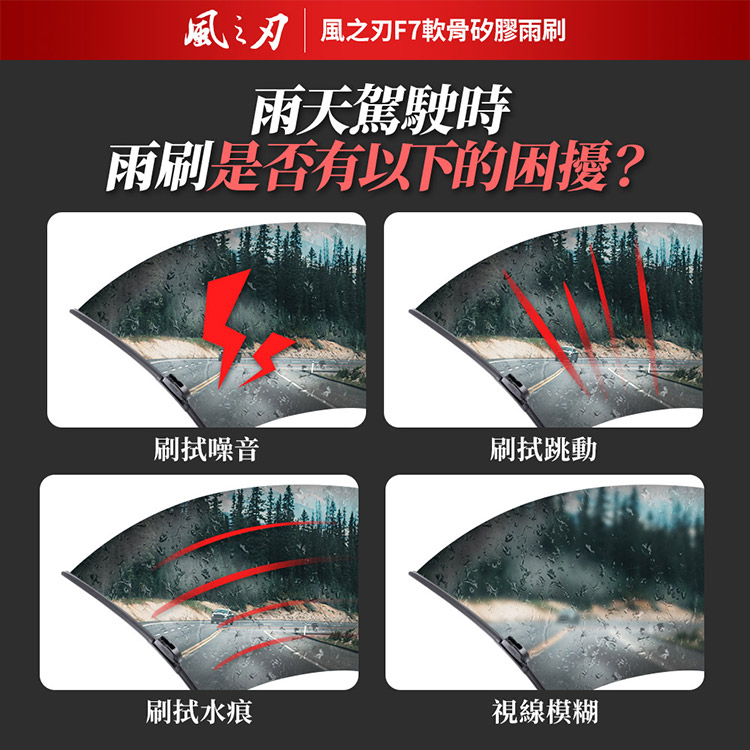 【風之刃】F7軟骨矽膠雨刷-專用款轉接頭F11+雨刷(1組)