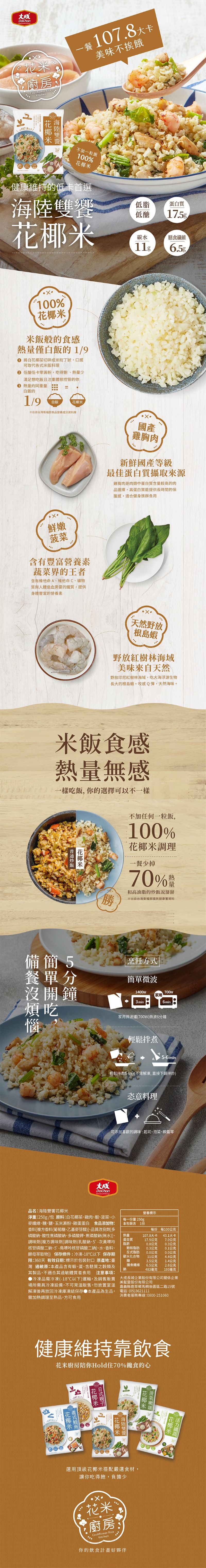 【健身運動首選】 【飲食計畫好夥伴】●使用100%花椰米、嚴選國產雞胸肉、紅樹林野放根島蝦●運動健身最佳首選●簡單加熱,5分鐘料理上桌