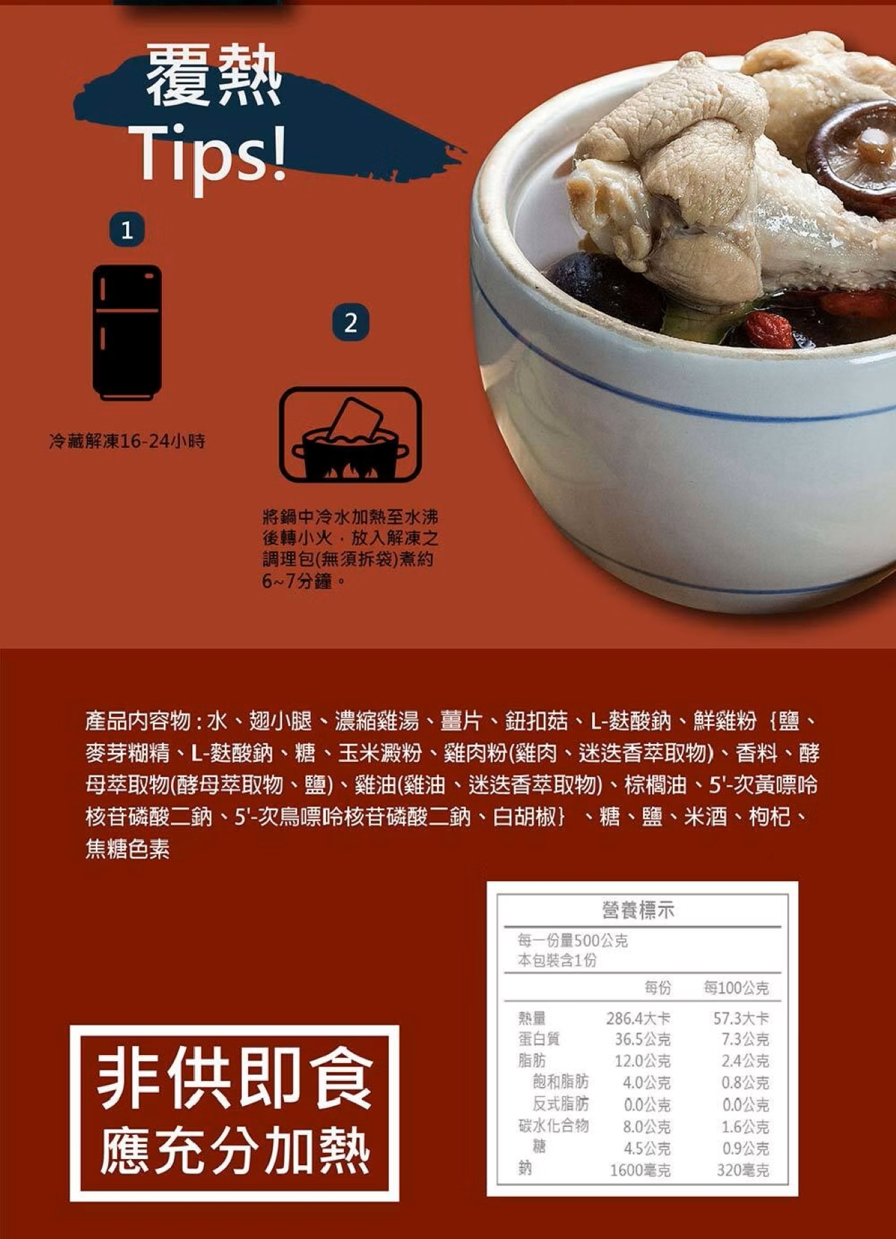 【大成食品】養氣香菇雞湯 (500g/包)