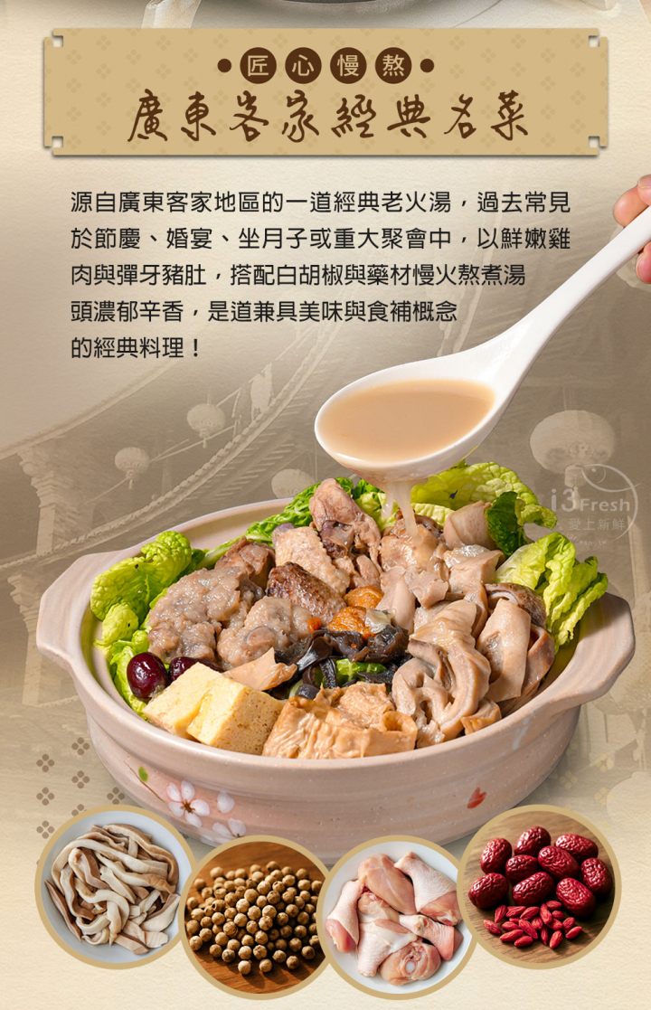 嚴選鮮嫩雞肉,搭配Q軟帶勁的豬肚,湯底採用豚骨、雞骨與白胡椒等多重食材精心熬煮而成,濃郁香醇,特別加入紅棗與枸杞提味養生,微辛不嗆、暖心不燥,全家大小都適合的美味!