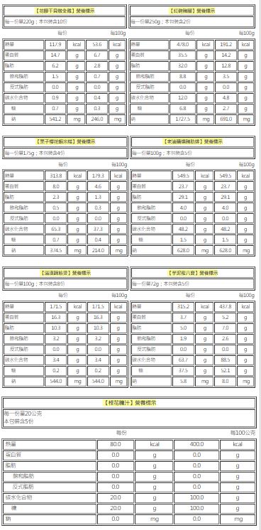 過敏原:本產品含有堅果類、甲殼類、魚類、大豆、芝麻及其製品,對其過敏者請勿食用