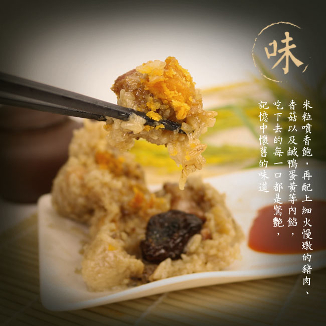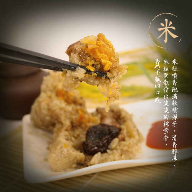 內容物成分:糯米、花生、米豆、豬肉、蛋黃、香菇