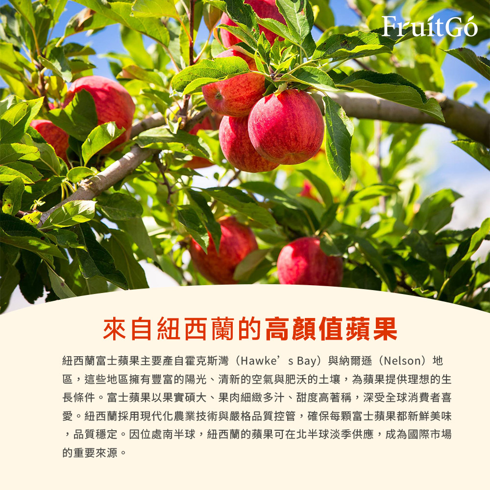 台灣最受歡迎的蘋果品種---富士富士蘋果是台灣最受歡迎的品種。果肉細緻多汁、蘋果香濃郁,爽脆可口、香甜多汁、營養豐富,甜度高、微帶點蘋果酸、讓人忍不住一口接一口!這是為何歷年來銷量在台灣總是皆位居第一。天然鮮果多吃多健康! 生長於純淨的紐西蘭,天然無打蠟紐西蘭氣候宜人,日照及降雨充裕,加上純淨的水源,讓紐西蘭成為世界上最棒的蘋果故鄉之一。非常適合種植蘋果,美味亦是舉世聞名。因環境純淨,蘋果無打蠟可連皮吃,讓您更安心。☀️ 保存|建議冷藏保存,提早享用脆度較佳小提醒:❶ 天然栽種之新鮮水果蔬菜會有些許大小顆差異,馥果出貨時會確保總重量符合商品規格。❷ 蘋果皆是自然生長,由農民一顆顆手採,再經由長途運輸後抵達台灣;蘋果表皮會有採收、運輸時產生的輕微痕跡 ( 如:枝傷、碰撞等),並不影響實際口感喔!❸ 進口原箱商品、小箱為不拆售直接出貨,運送過程約有5%的耗損為正常現象,恕不在退換貨範圍。