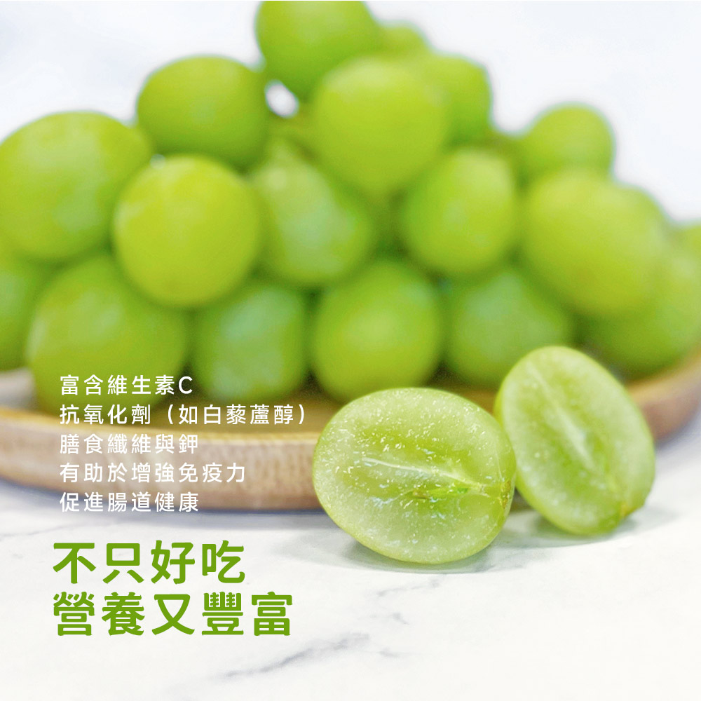 皮薄脆口,果實飽滿 秘魯擁有肥沃土壤及溫暖氣候,四周擁有海洋、沙漠與高山,氣候宜人。相當適合種植葡萄,也因此秘魯的葡萄產區幅員遼闊。綠無籽葡萄香甜多汁,皮薄清脆、果肉飽滿,洗淨即可吃。帶著獨特的花果香,無籽的葡萄方便食用!大人小朋友都喜愛。果大、脆口、甜度高!綠無籽葡萄外表翠綠,果粒碩大飽滿。採收時的甜度極高,無籽多汁,脆甜飽滿的果肉帶有淡淡麝香香氣!入口幾乎感覺不到果皮。種種特點讓這個品種一產出即受各國市場、各個消費者喜愛。雖然綠無籽外觀看起來大同小異,但其實有相當多品種我們選以下幾種口感好的品種出貨:◎ 秋脆 Autumn Crisp: 帶有麝香、放幾天後果身轉黃麝香味更濃◎ 甜地球 Sweet globe: 果身圓、大果◎ 糖滴 Sugar Drop: 果身為漂亮長型,像糖滴,是葡萄界的美女◎ 糖脆 Sugar Crunch: 果身長、甜度高世界上最受歡迎的葡萄品種之一新品種「秋脆」綠無籽葡萄於2009年發表,秋脆葡萄外表翠綠帶黃,果粒碩大飽滿。採收時的甜度極高,無籽多汁,脆甜飽滿的果肉帶有淡淡麝香香氣,入口幾乎感覺不到果皮,種種特點讓這個品種一產出即受各國市場、各個消費者喜愛。2012年開始大量種植,產區橫跨南北半球。澳洲秋脆葡萄比其他產區偏黃些。喜歡甜度高的朋友,可以在冰箱多放幾天,葡萄會繼續轉黃,且麝香會更加明顯。☀️ 保存|冷藏,最佳賞味期14天。☀️ 低溫熟成,喜歡甜的朋友可以等葡萄轉淡鵝黃色時享用,甜度較高。☀️ 依據產季切換品種出貨。產季重疊時,依照當天到貨,篩選品質最好的出貨。