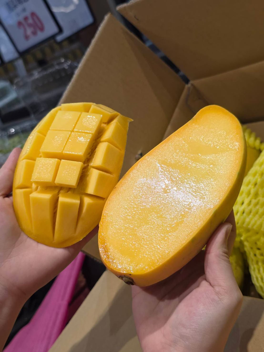 🎁 送禮自吃都超有面子金煌=體面大顆、香氣濃郁、果肉多汁每一箱都是果農的驕傲 × 盛夏的限定禮物未熟(偏硬)👉 室溫通風放置 2–4 天後熟
