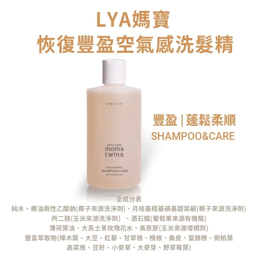 【Lyanature co.】 李英愛親研LYA 媽寶恢復豐盈空氣感洗髮精 320g 公司貨