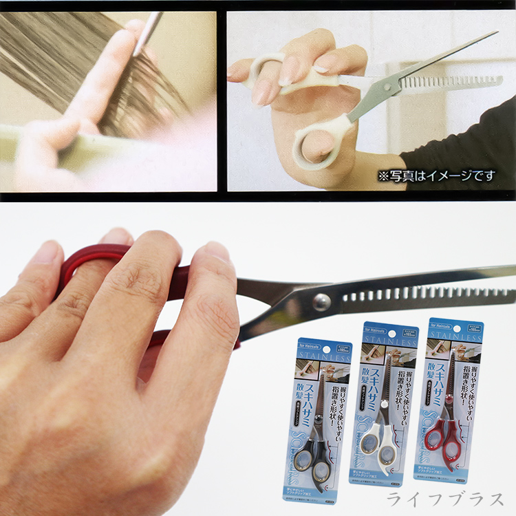 日本品牌品質安心,採用不鏽鋼材質,刀刃約5.5cm,適用打薄修髮,家庭DIY修髮好幫手。