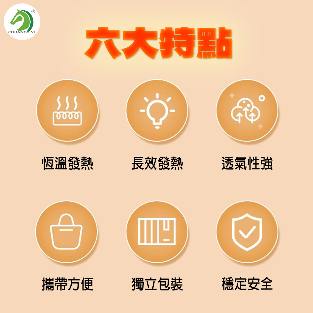 使用方式:將包裝沿切口打開,撕去暖貼背後的襯紙,貼於衣物上用手鋪平及可