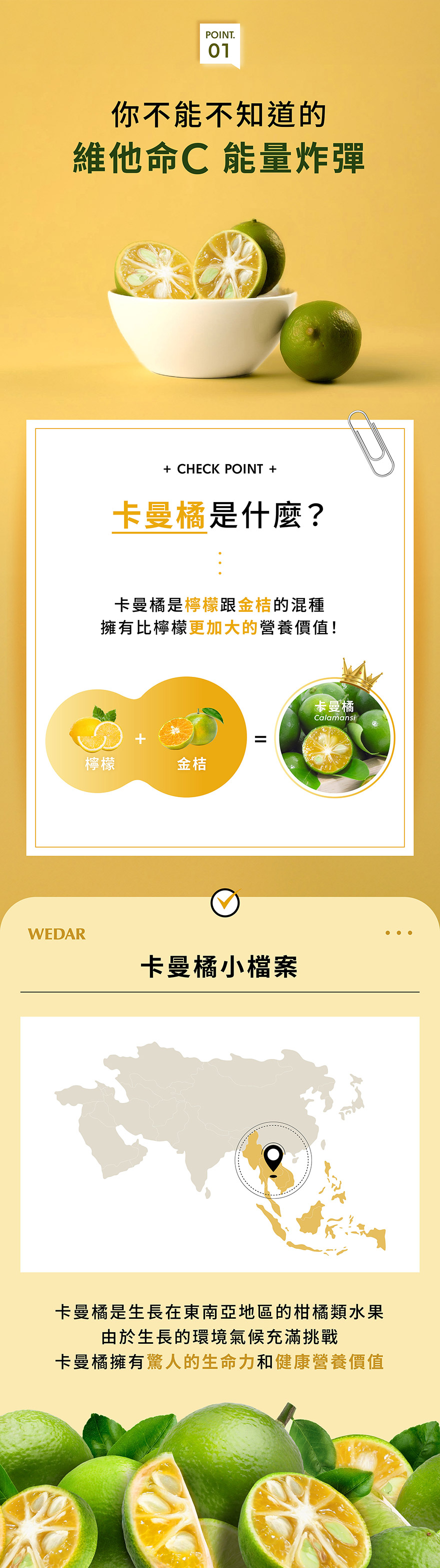 卡曼橘維生素C含量 比檸檬多30倍!天然植物萃取,易吸收利用,增強日常防禦力,維持平衡健康,一顆約106mg,滿足你的每日所需![有效日2026/05/23]