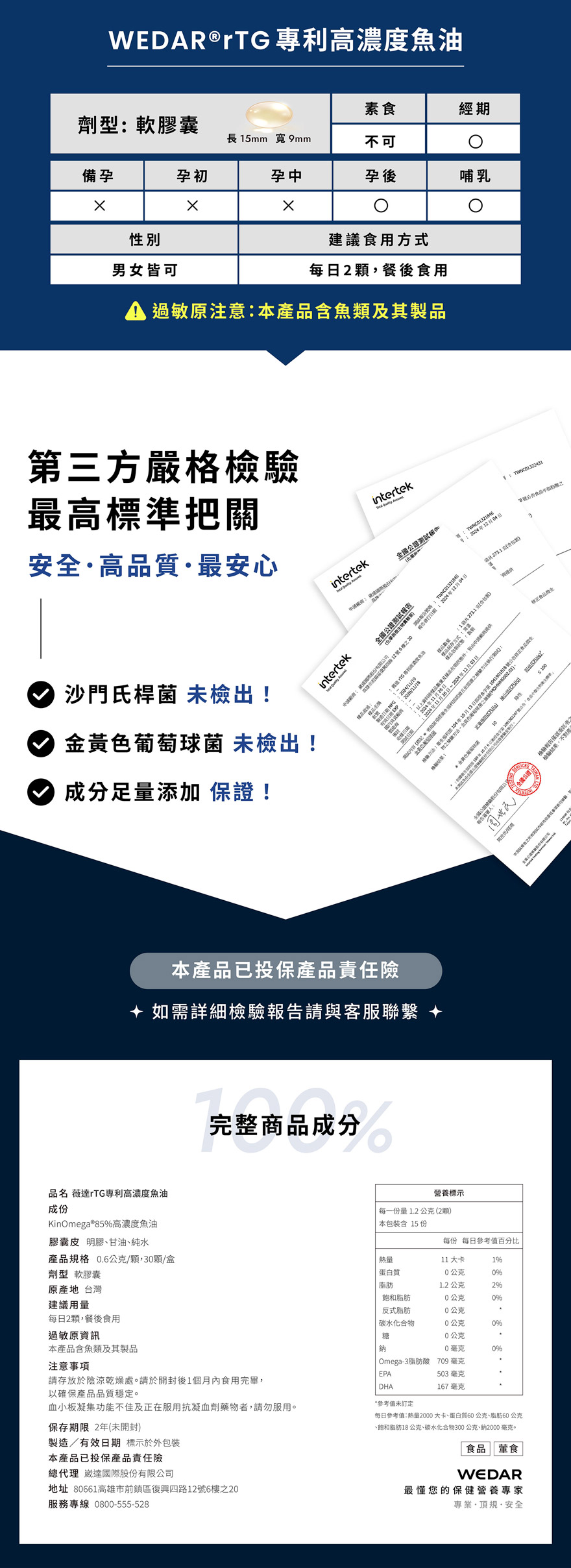 OMEGA-3含量達90%,專利萃取技術SPD保留最營養成分,國際認證、台灣第三方檢驗安心有保障,軟膠囊鎖鮮、低氣味、迷你好吞食