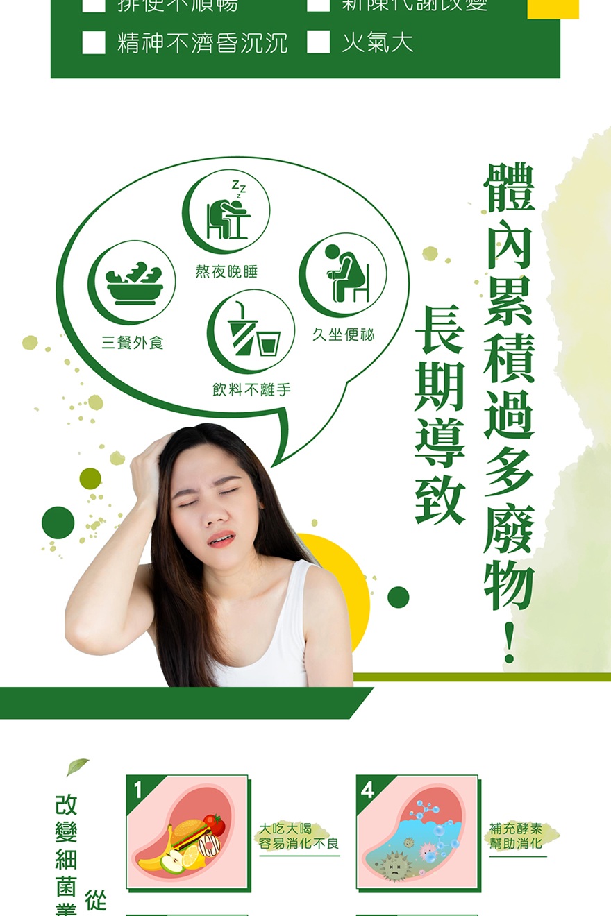 ◇推薦族群:三餐外食、飲料不離手、久坐便秘、熬夜晚睡等。