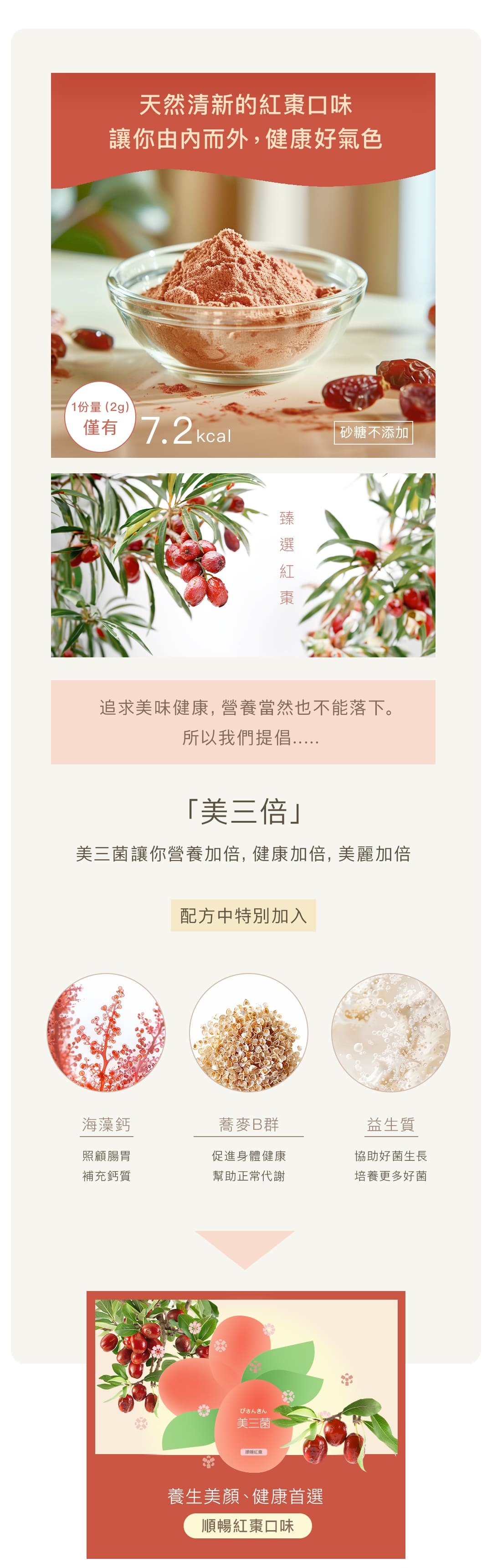 採用益生質、蕎麥B群及海藻鈣,組成+3完美組合