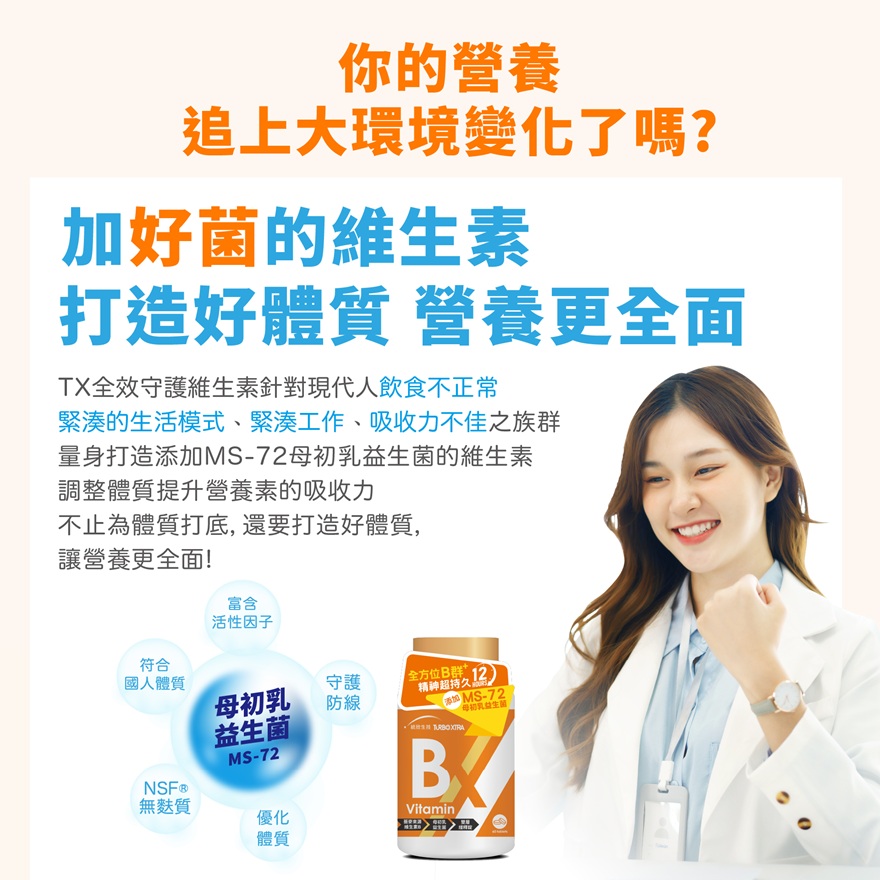 ●好菌添加:初乳來源MS-72母乳益生菌,擁有台灣、德國專利菌株技術,調整體質提升營養素的吸收力。