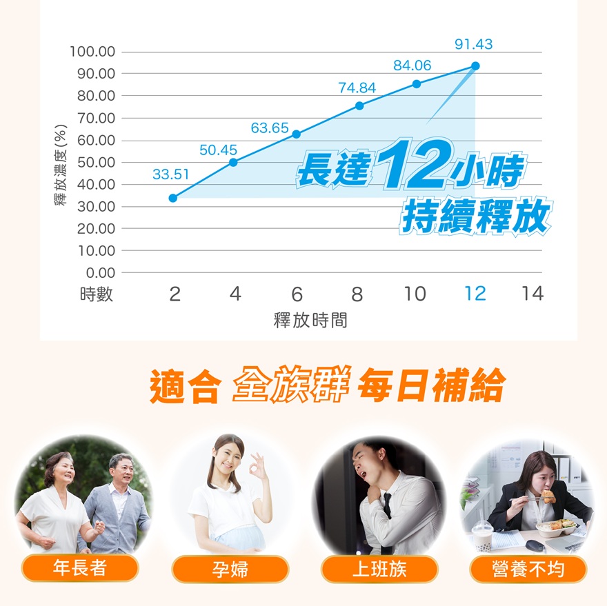 2.緩釋層:高單位的維生素B群添加,緩慢釋放12小時不斷電,續航力UP!