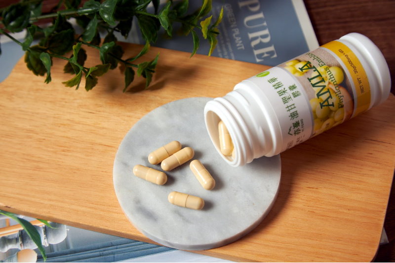 成 份:100%余甘子粉 膠囊成份:羥丙基甲基纖維素、純水、鹿角菜膠、氯化鉀、二氧化鈦(植物膠囊)