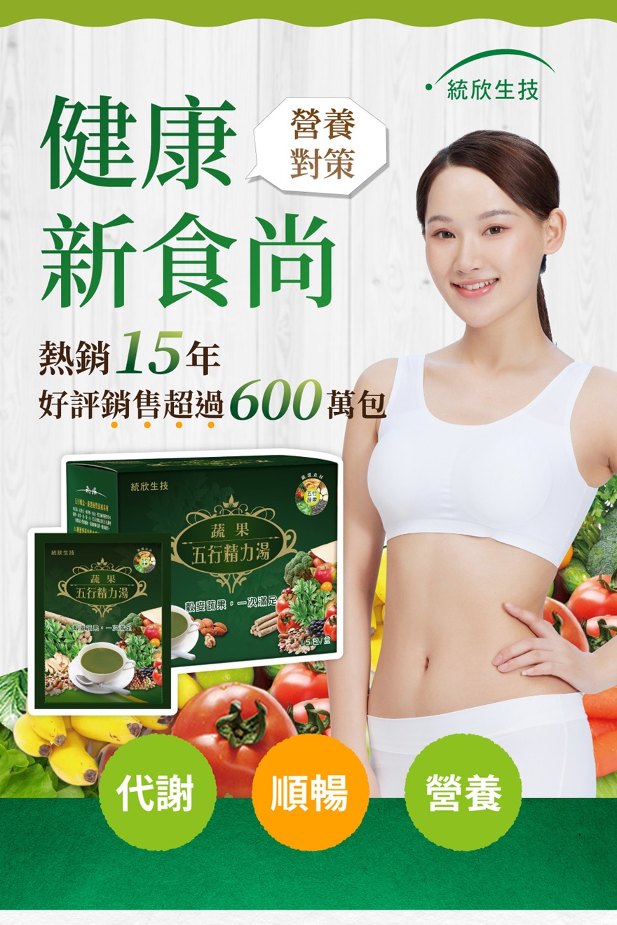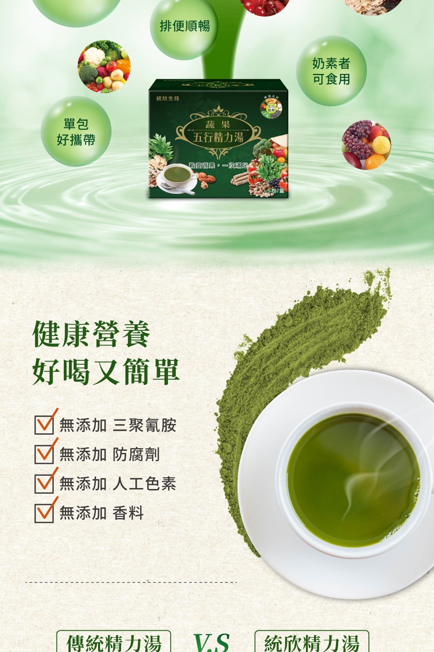 【統欣生技】蔬果五行精力湯(15包/盒)×4盒+送田園蔬食粥(3入/盒)×1盒&山藥蔬食粥(3入/盒)×1盒