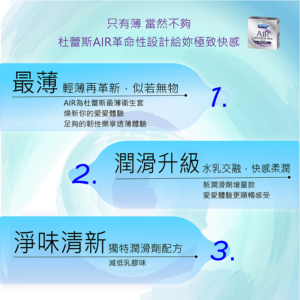 【杜蕾斯 Durex】AIR輕薄幻隱潤滑衛生套 8入/盒 保險套