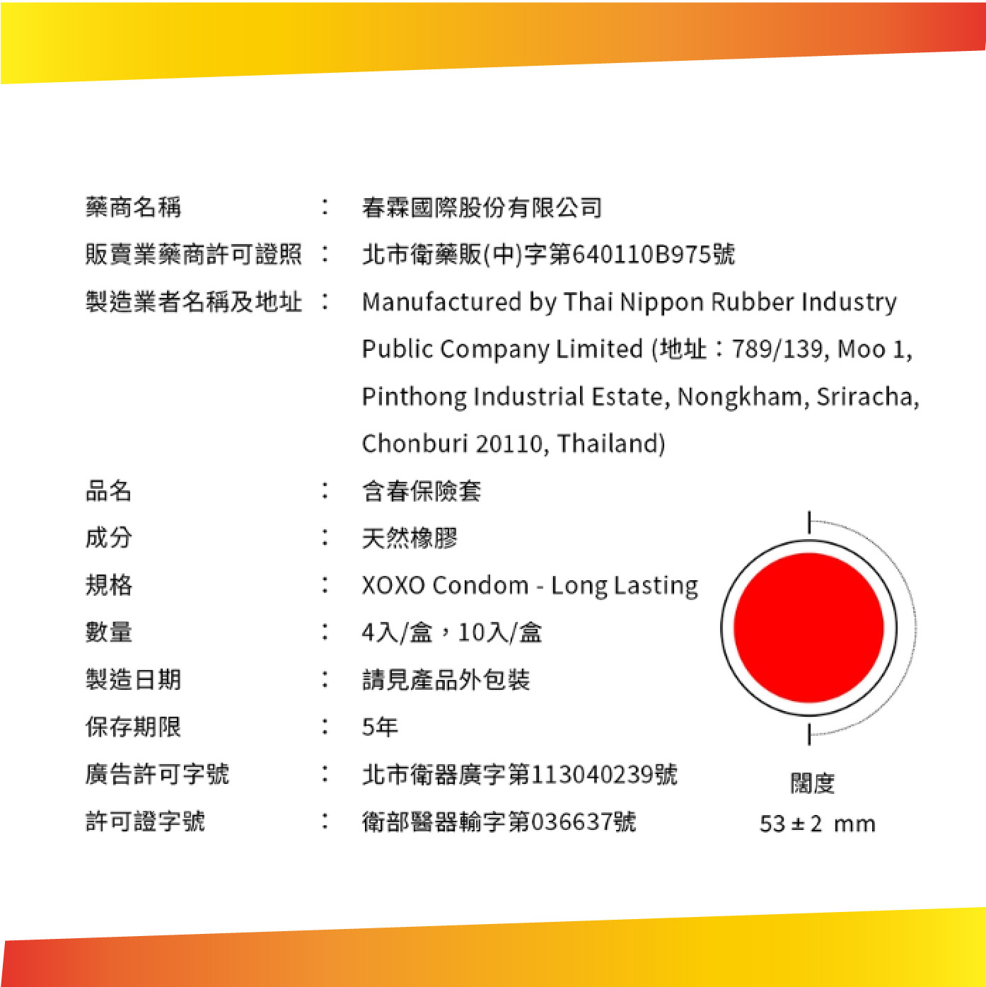 許可證字號:衛部醫器輸字第036637號