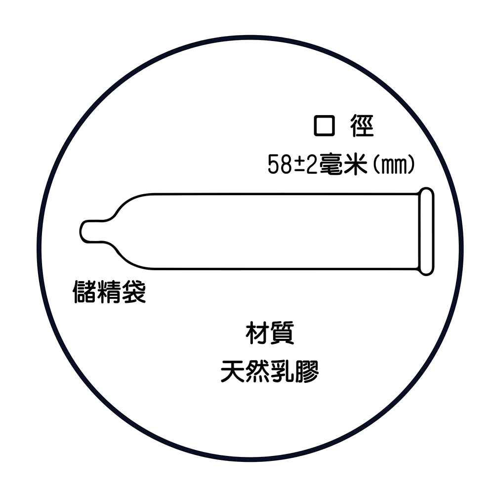 本產品為一次性用途,用完請丟棄勿再重複使用。本產品乃針對陰道性交設計,若使用於非陰道性交時,滑落或破損的機率會提高。目前任何一種保險套皆不能100%有效避孕及預防感染性病及愛滋病。本產品原料為天然橡膠製成之乳膠,對乳膠過敏者, 請避免使用。