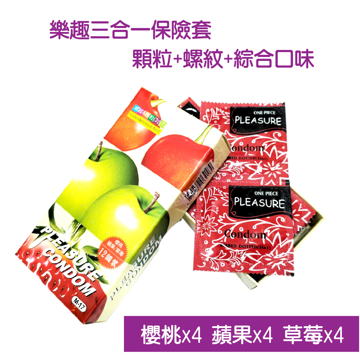 【樂趣】螺紋顆粒(3合1)蘋果衛生套 12入 保險套