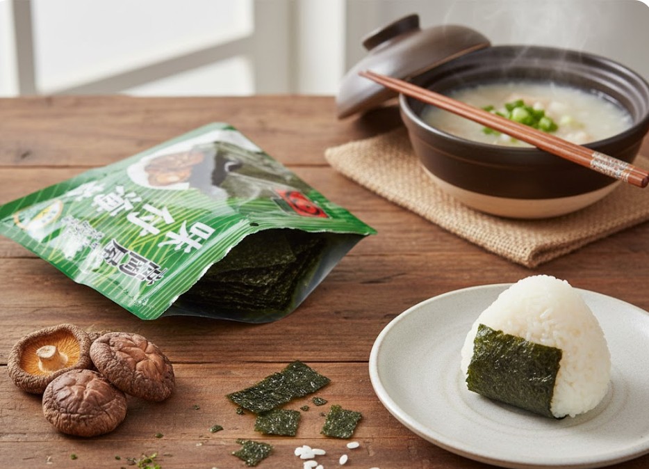海苔、純釀醬油(非基改)、香菇水(香菇、水)、蔗糖(二砂)、昆布、麥芽糖、米霖[糯米、蓬萊米、果糖、水、醲造米酢(水、糯米、釀造酒精)、鹽]、岩鹽、海鹽