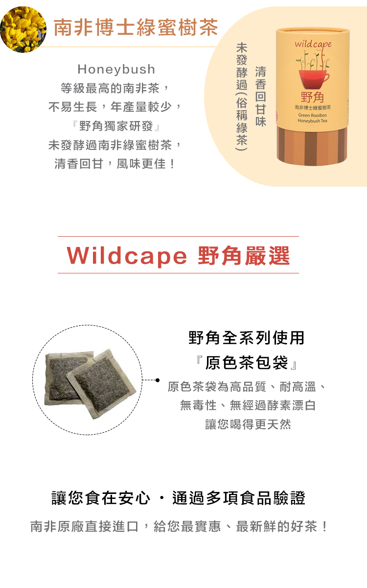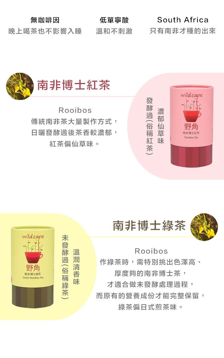 『野角』南非國寶茶(未發酵綠蜜樹茶)65%蜜樹茶+35%博士綠茶