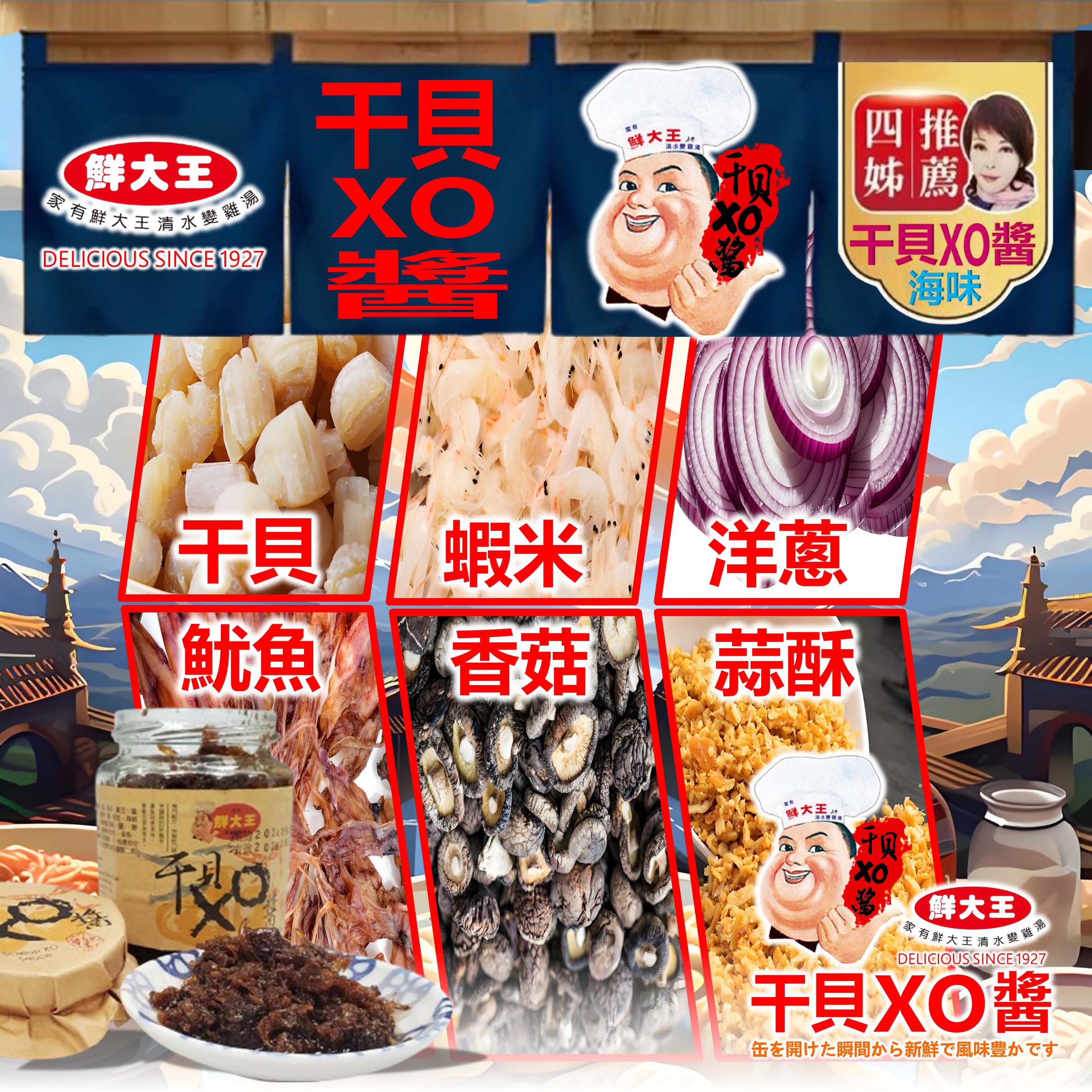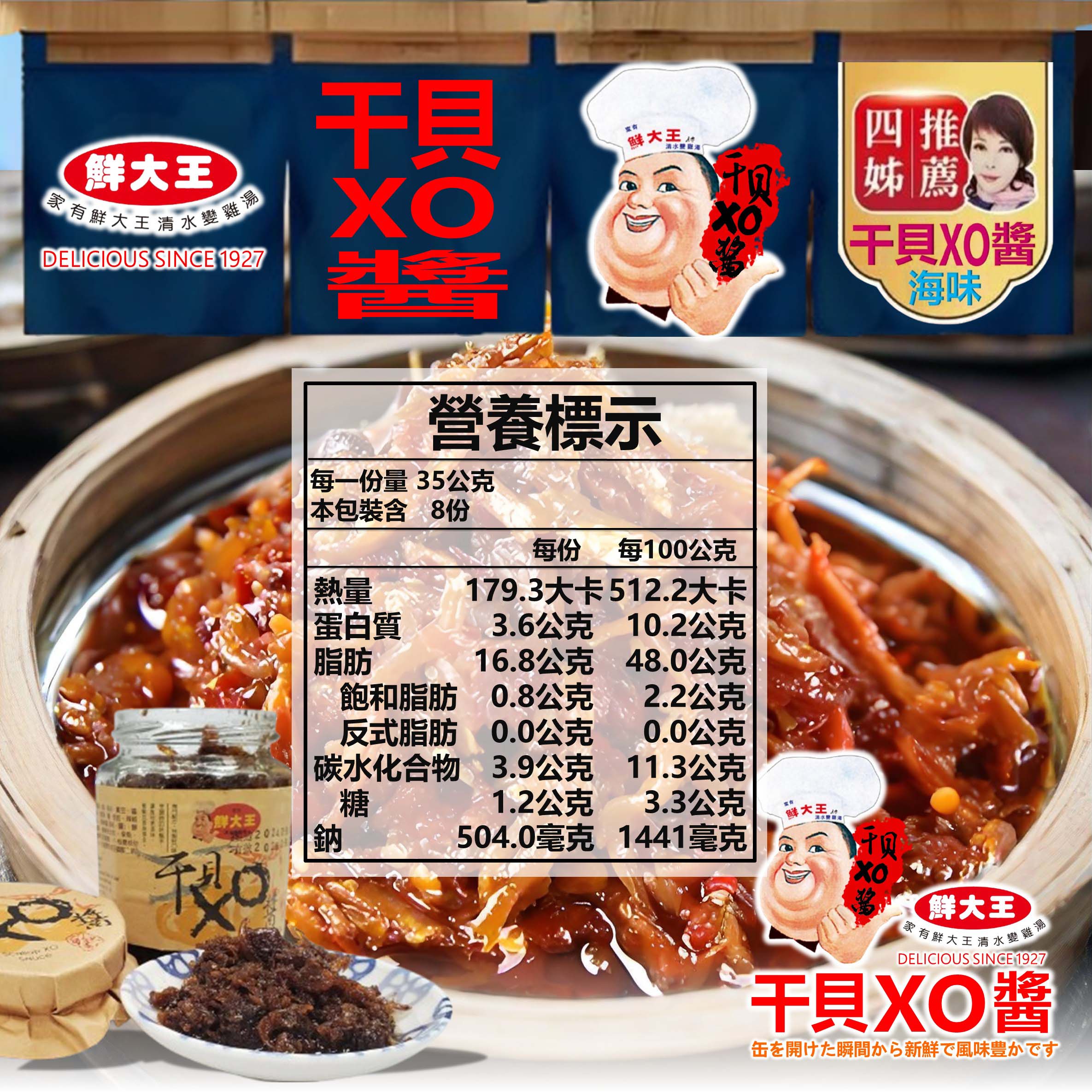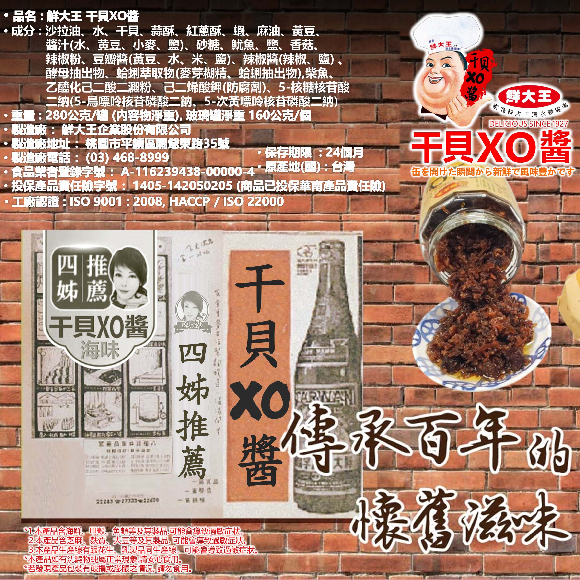 沙拉油、水、干貝、蒜酥、紅蔥酥、蝦、麻油、黄豆、醬汁(水、黄豆、小麥、鹽)、砂糖、鱿魚、鹽、香菇、辣椒粉、豆瓣醬(黄豆、水、米、鹽)、辣椒醬(辣椒、鹽)、酵母抽出物、蛤蜊萃取物(麥芽糊精、蛤蜊抽出物),柴魚、乙醯化己二酸二澱粉、己二烯酸鉀(防腐劑)、5-核糖核苷酸二納(5-鳥嘌呤核苷磷酸二鈉、5-次黃嘌呤核苷磷酸二納)