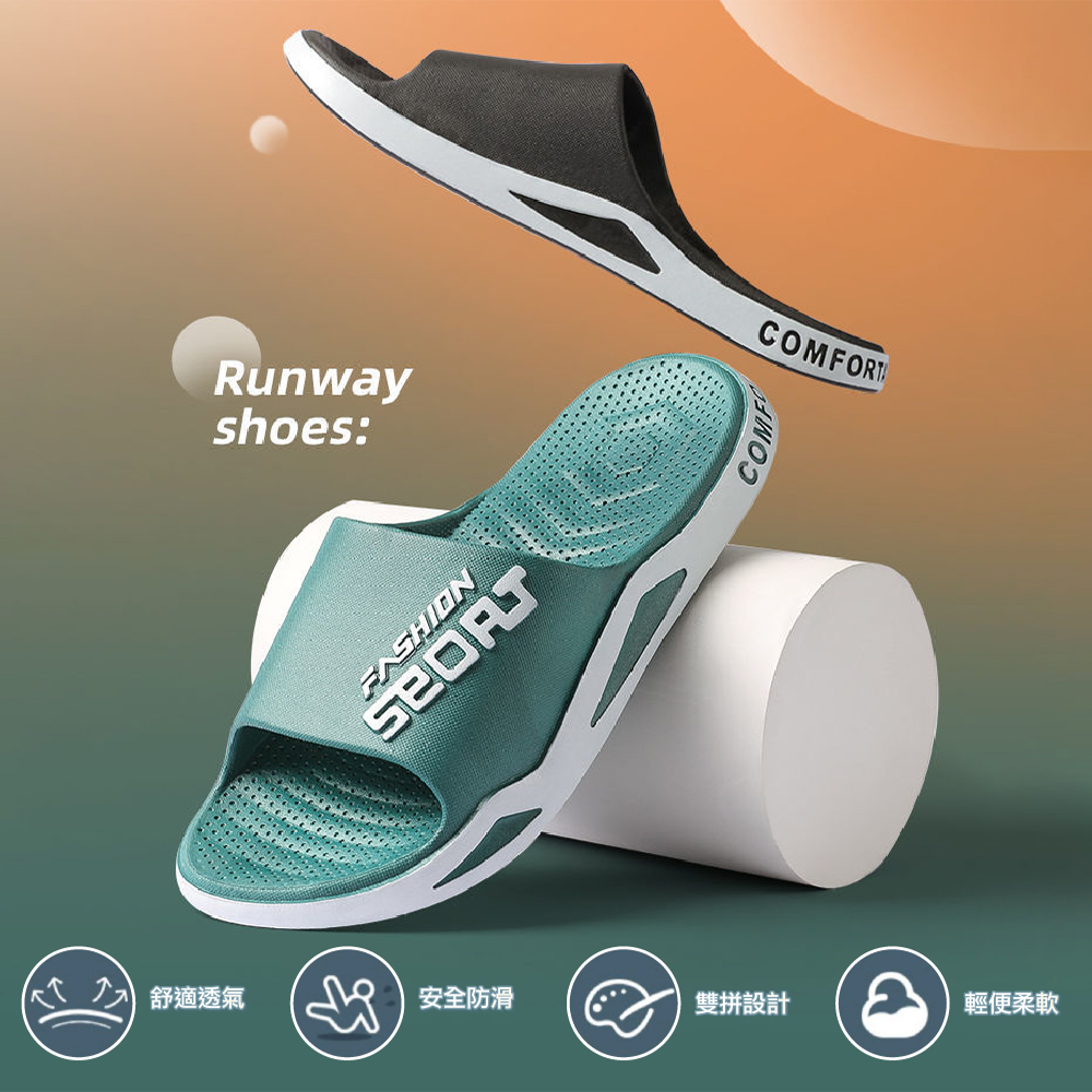 【JAR嚴選】運動風潮流情侶透氣拖鞋-卡其40/41