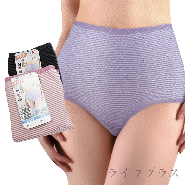 大尺碼橫條包臀高腰女內褲-8758-XL-6件