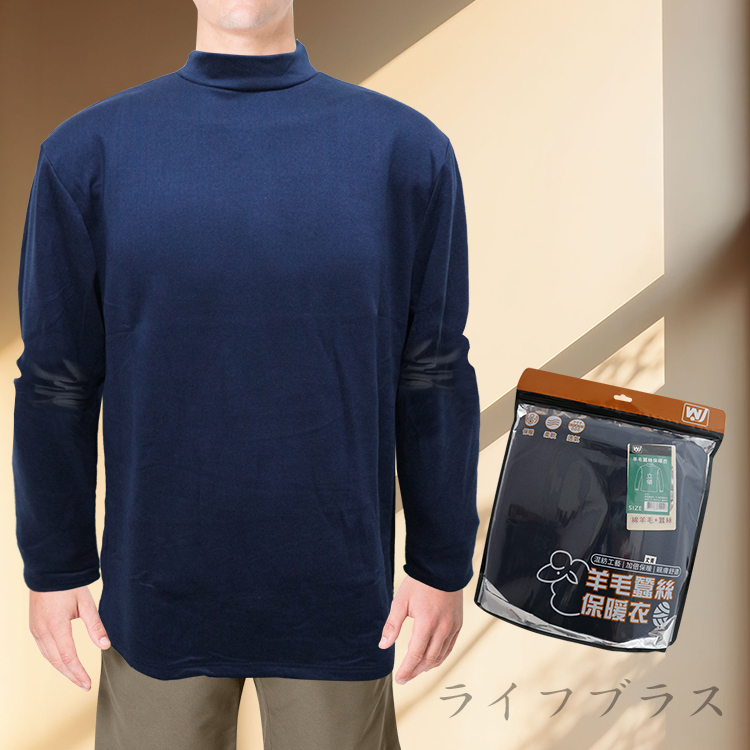 男羊毛蠶絲保暖衣-立領-6865-丈青色-M號-2件