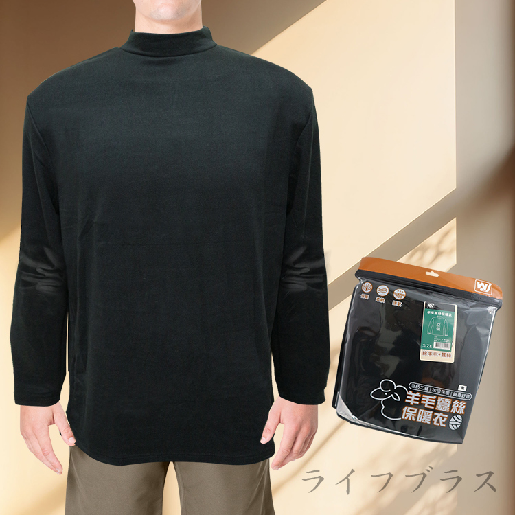 男羊毛蠶絲保暖衣-立領-6865-黑色-XL號-2件