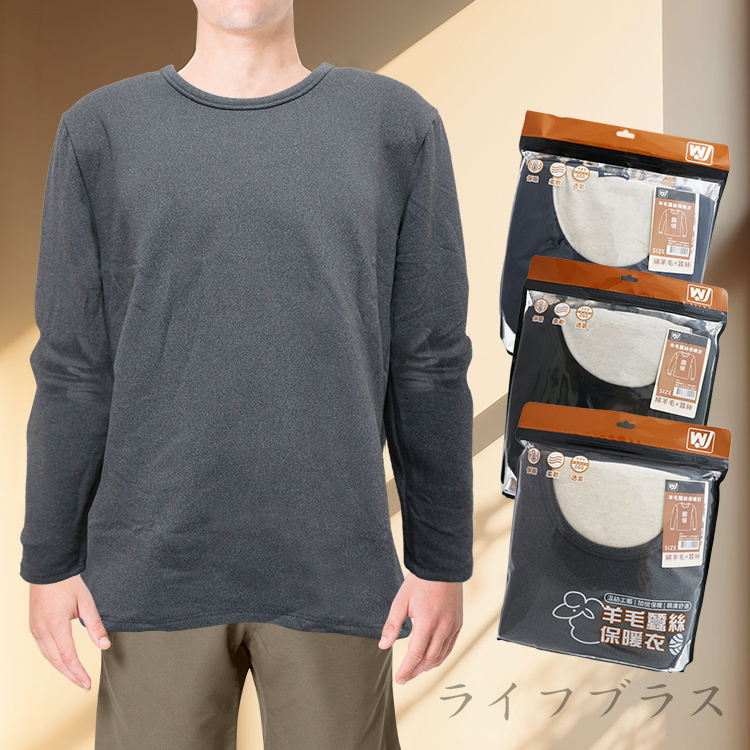 男羊毛蠶絲保暖衣-圓領-6861-L-3件