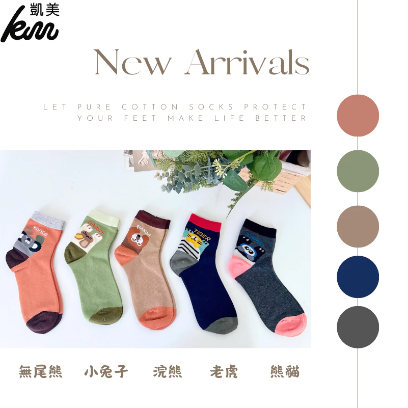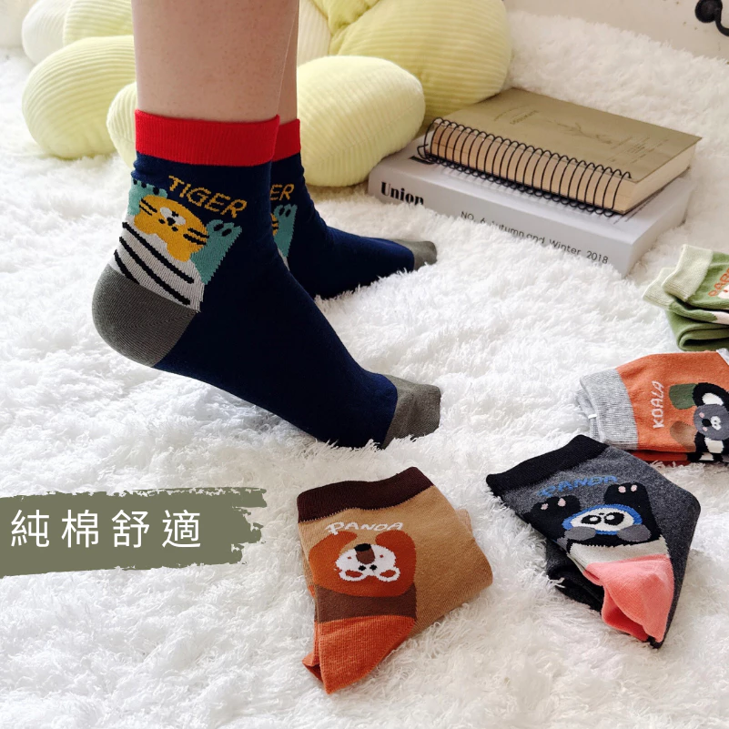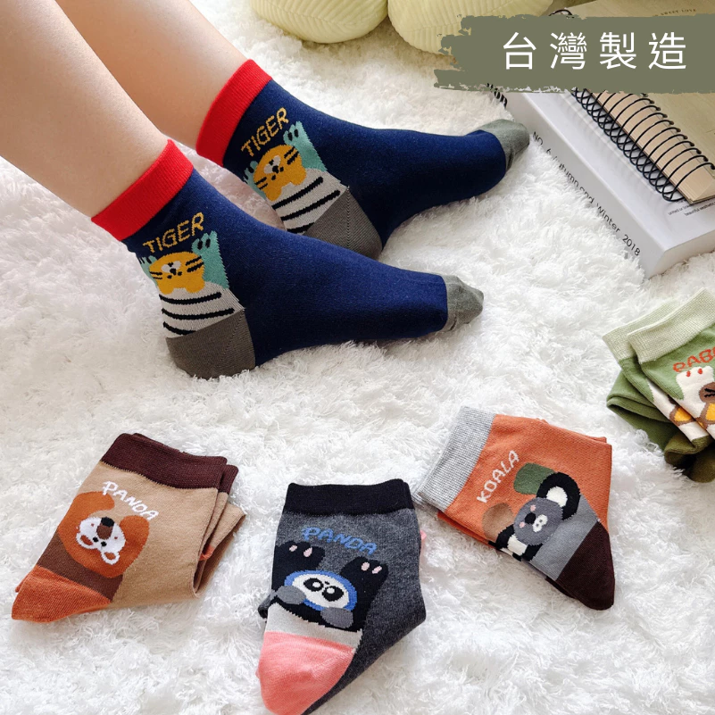 [凱美棉業] 8雙組 隨機出色 MIT台灣製造 可愛動物純棉襪 22-26cm 凱美棉業