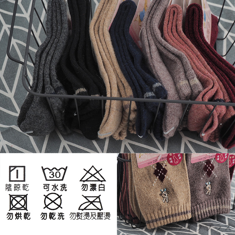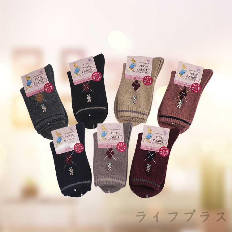 比得兔精繡兔羊毛女襪-休閒菱格-SK23015-6雙