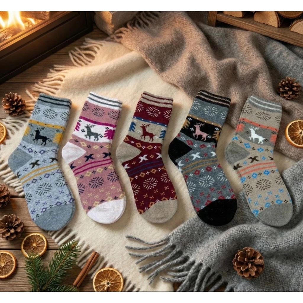 [凱美棉業]6雙組 隨機出色 冬日必備(女款)精緻保暖毛襪 防寒襪 保暖襪 毛襪 長襪 冬天襪-聖誕馴鹿款