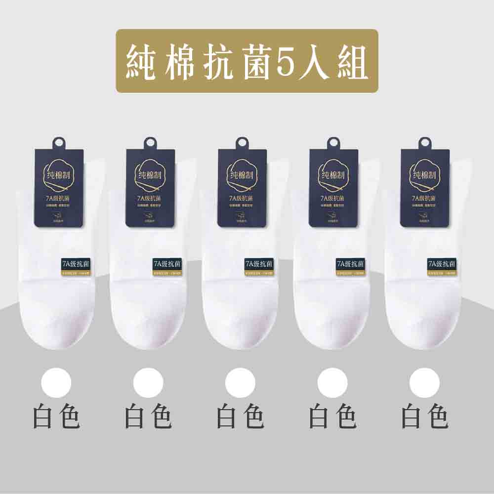 【JAR嚴選】7A抗菌精梳棉中筒吸汗透氣襪子5入組-白色5雙
